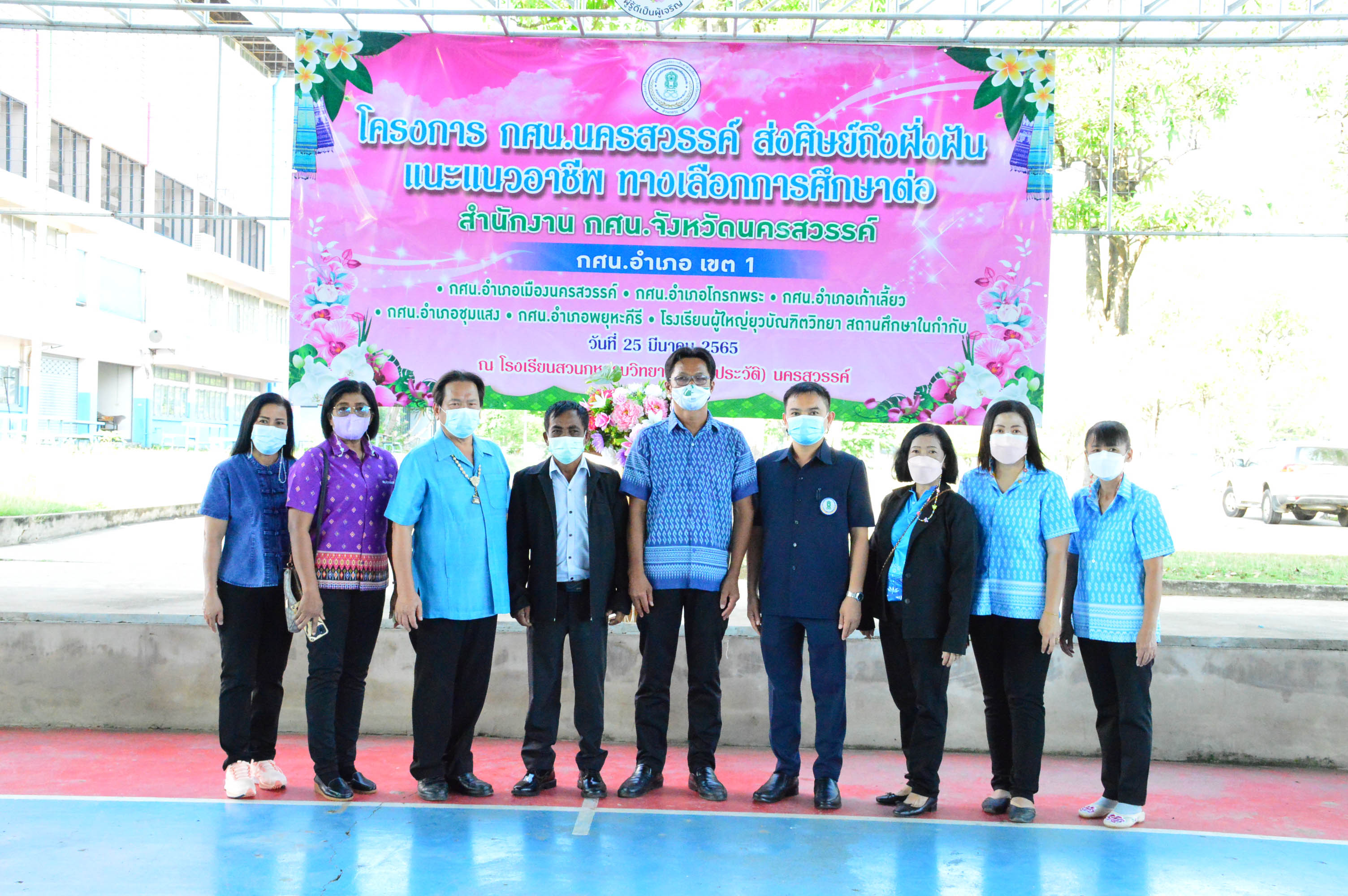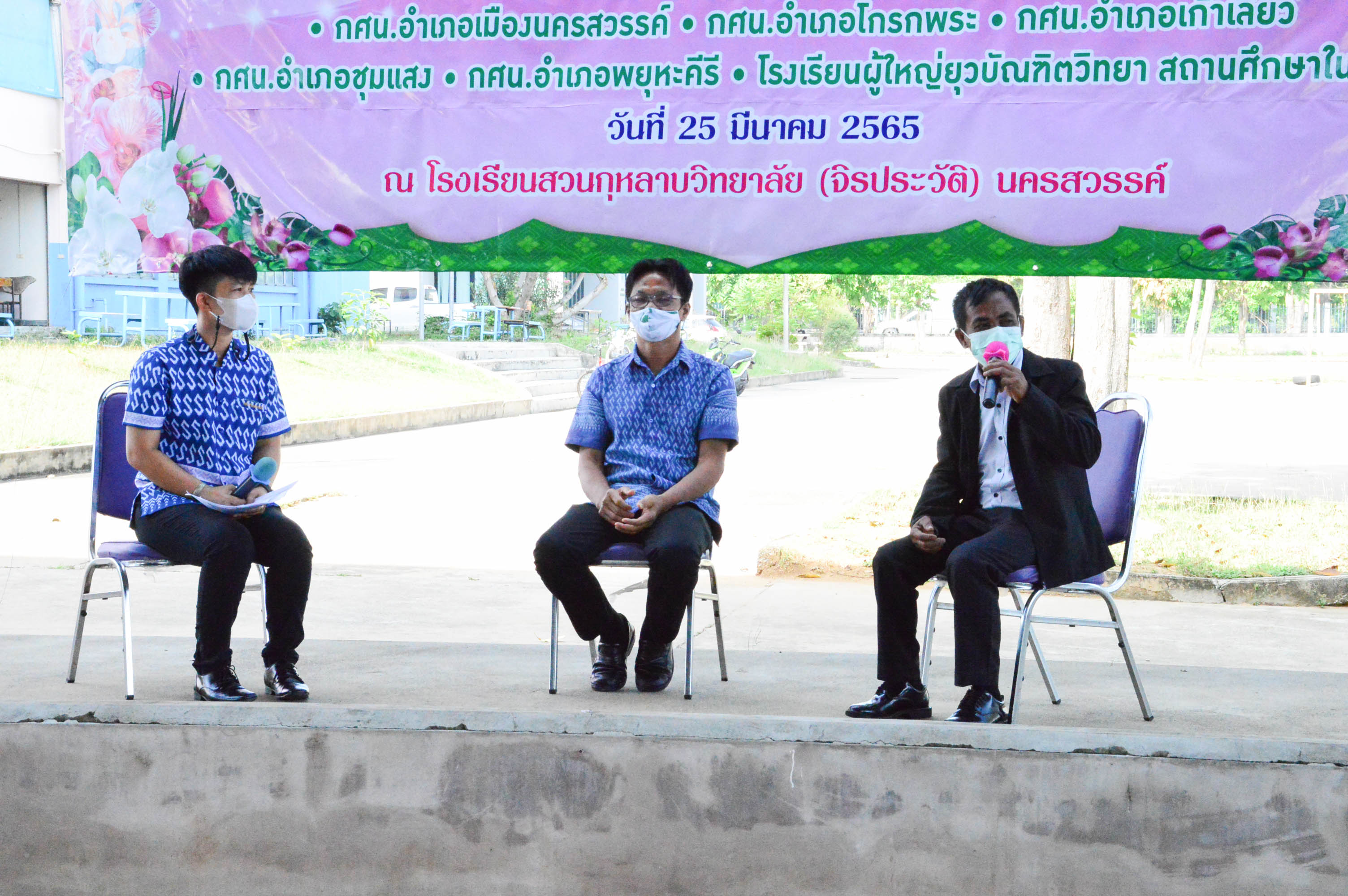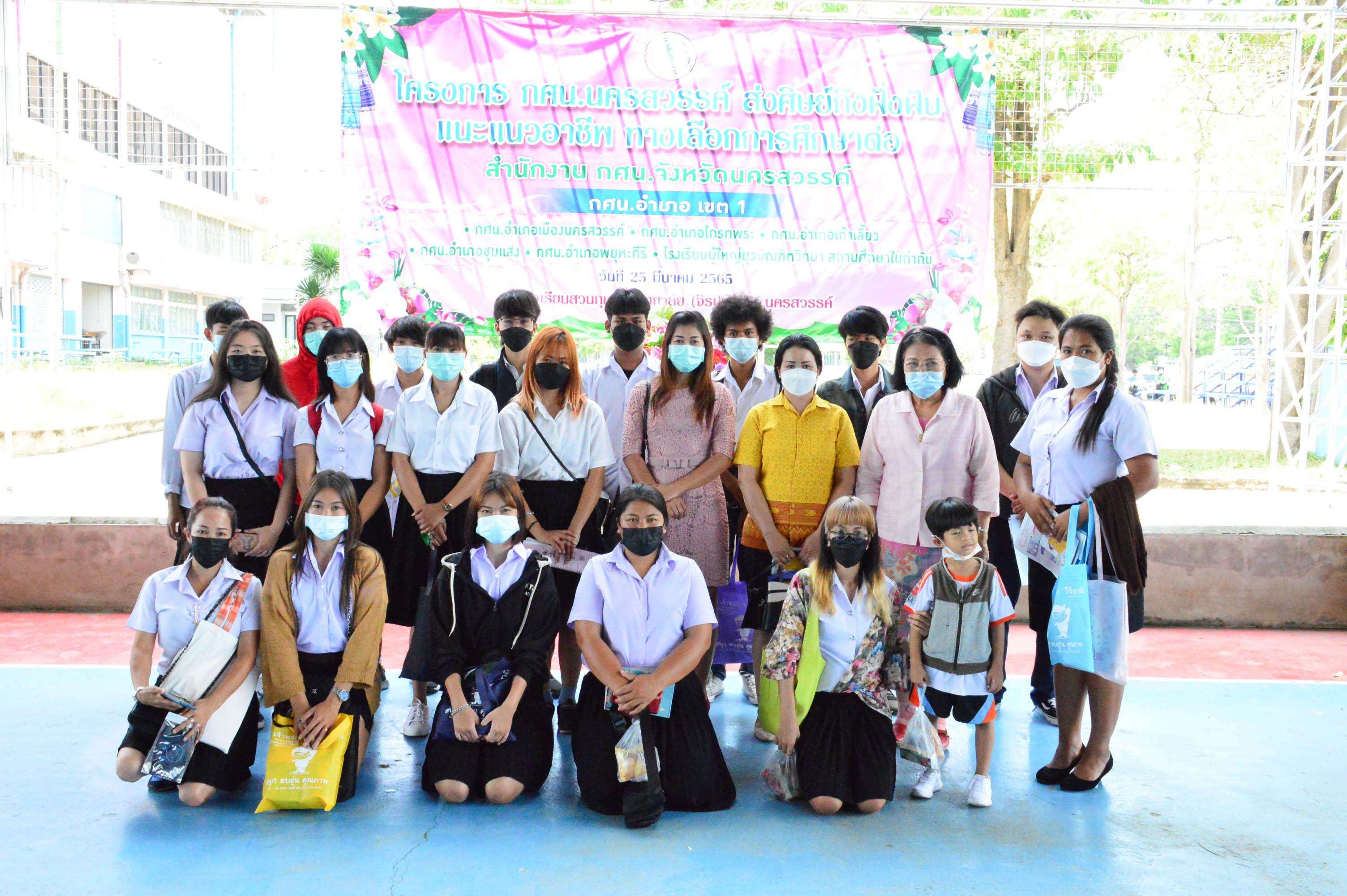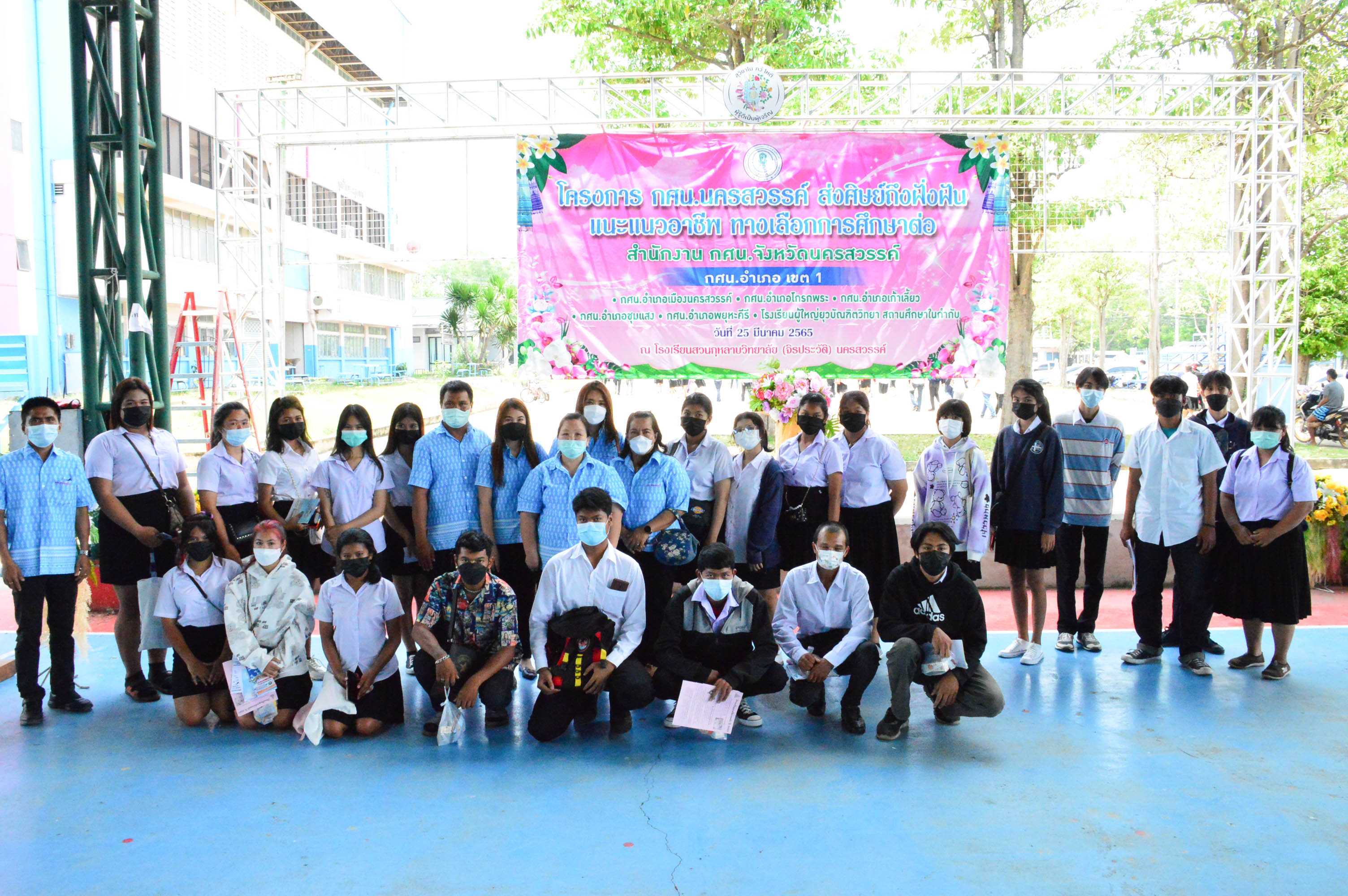 วันที่ 25 มีนาคม 2565 สำนักงาน กศน.นครสวรรค์จัดโครงการ กศน.นครสวรรค์ ส่งศิษย์ถึงฝั่งฝัน แนะแนวอาชีพ ทางเลือกการศึกษาต่อ ของกลุ่ม กศน.อำเภอเขต 1 (ภาคเช้า) และ เขต 3 (ภาคบ่าย) โดยมีนายจำนงค์ กล่อมแก้ว ผู้อำนวยการสำนักงาน กศน.จังหวัดนครสวรรค์