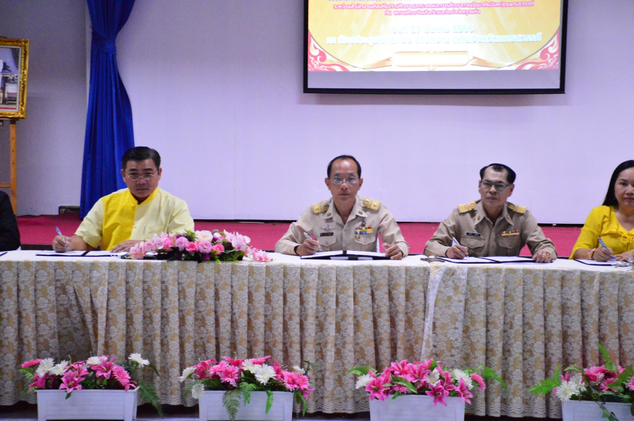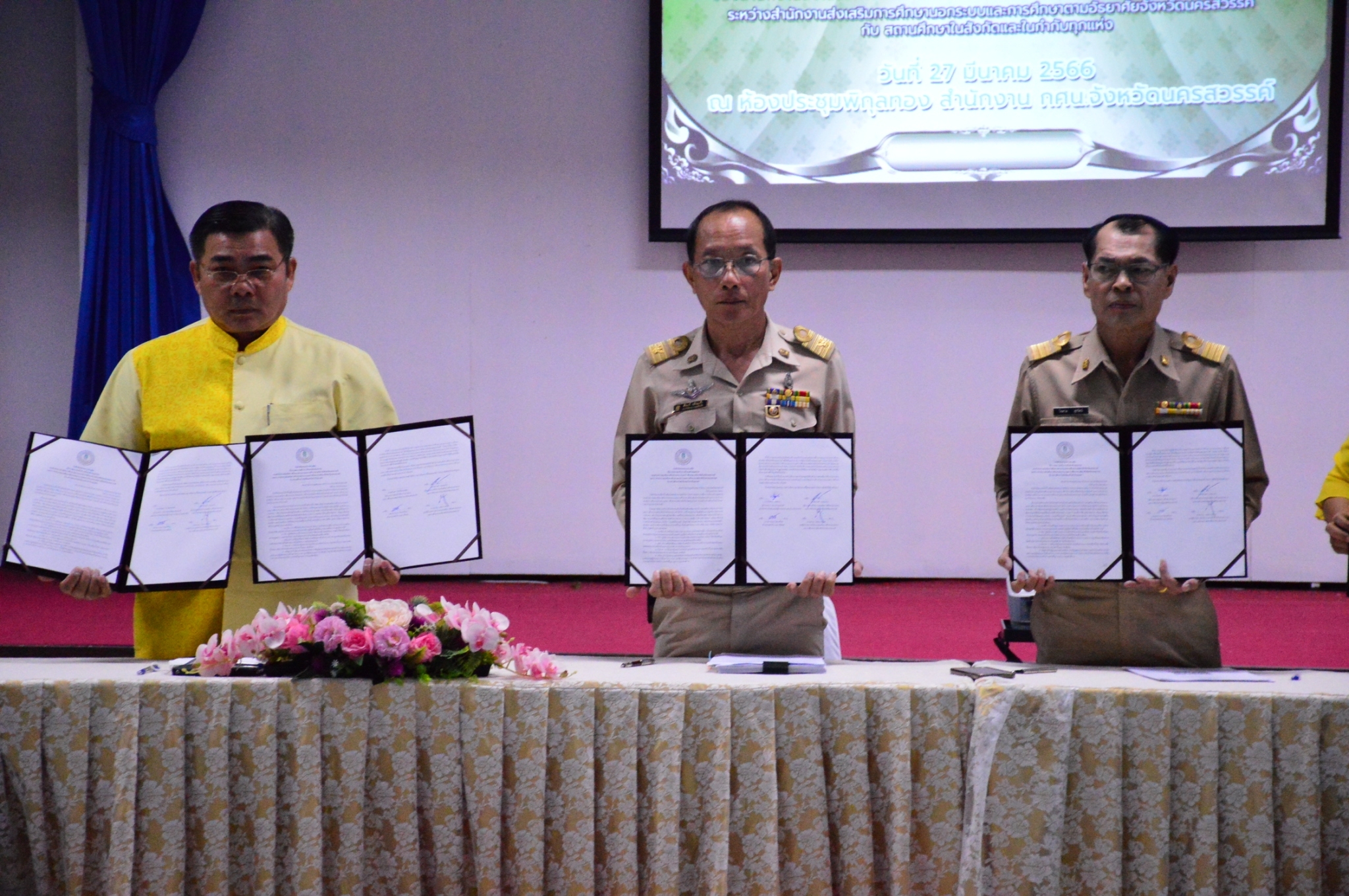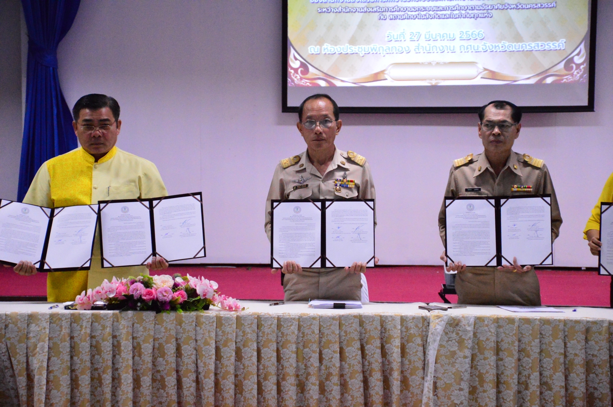 วันที่ 27 มีนาคม 2566 สำนักงาน กศน.จังหวัดนครสวรรค์ ได้ประกาศเจตนารมณ์ของข้าราชการครู บุคลากรทางการศึกษา และบุคลากรในสังกัดสำนักงาน กศน.จังหวัดนครสวรรค์ ซึ่งต่างเห็นพ้องร่วมกันที่จะขับเคลื่อนพัฒนาสำนักงาน กศน.จังหวัดนครสวรรค์ ในการเป็นองค์กรคุณธรรม ฯลฯ พร้อมกันนี้ สำนักงาน กศน.จังหวัดนครสวรรค์ได้ทำการลงนามความร่วมมือบันทึกข้อตกลง(MOU) ในการเป็นองค์กรคุณธรรม กับสถานศึกษาในสังกัดและในกำกับทุกแห่ง เพื่อให้ถือปฏิบัติและเป็นกติกา สร้างสิ่งดีงามให้เกิดขึ้น และเป็นแบบอย่างที่ดีต่อไป ณ ห้องประชุมพิกุลทอง สำนักงาน กศน.จังหวัดนครสวรรค์