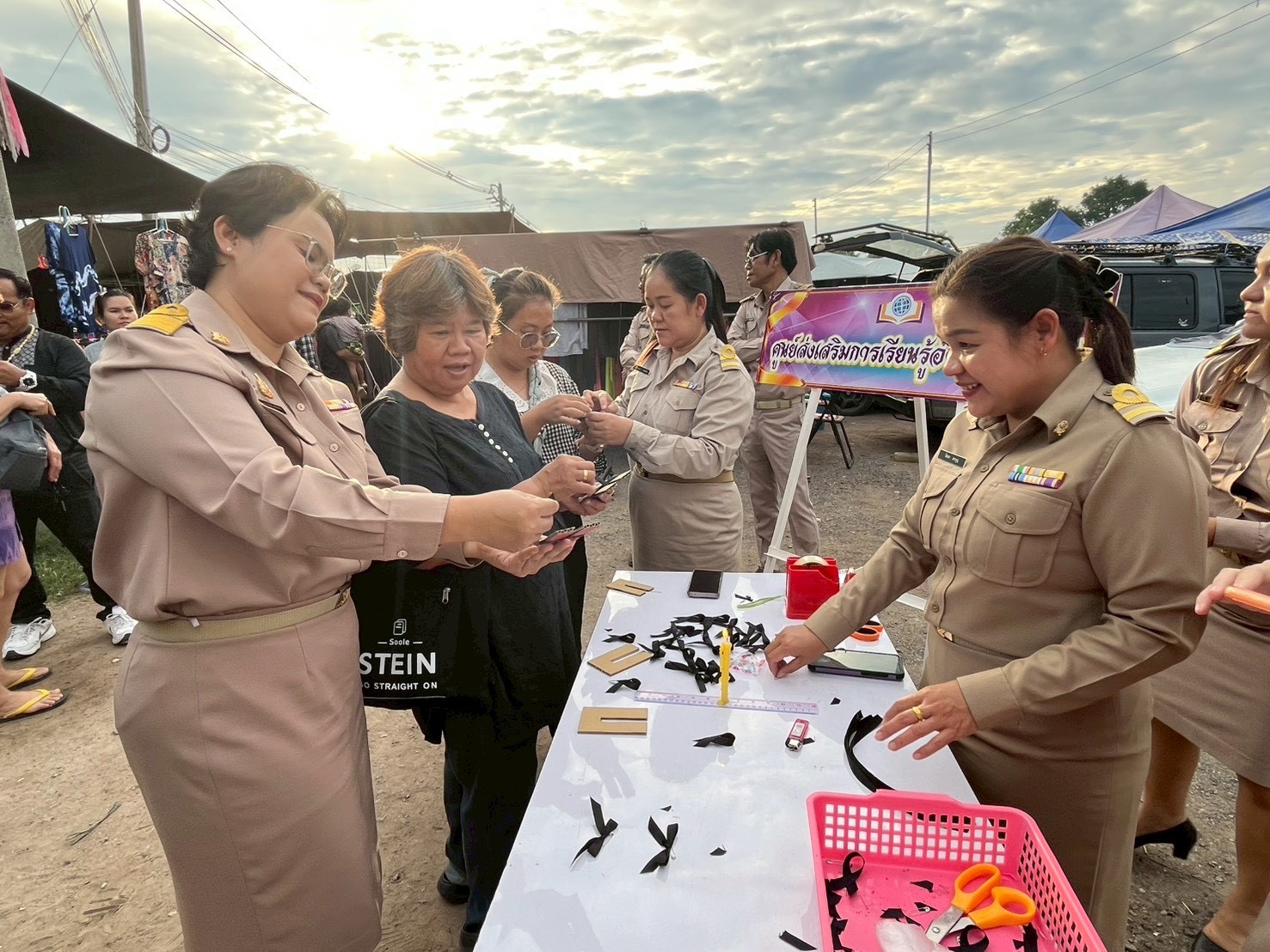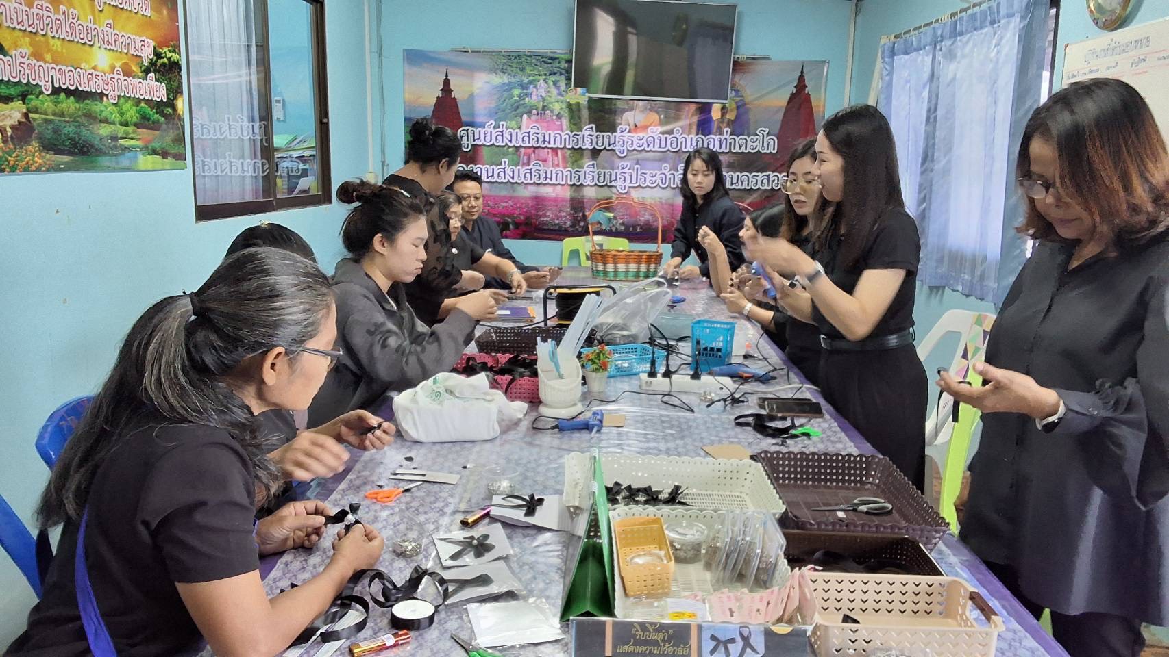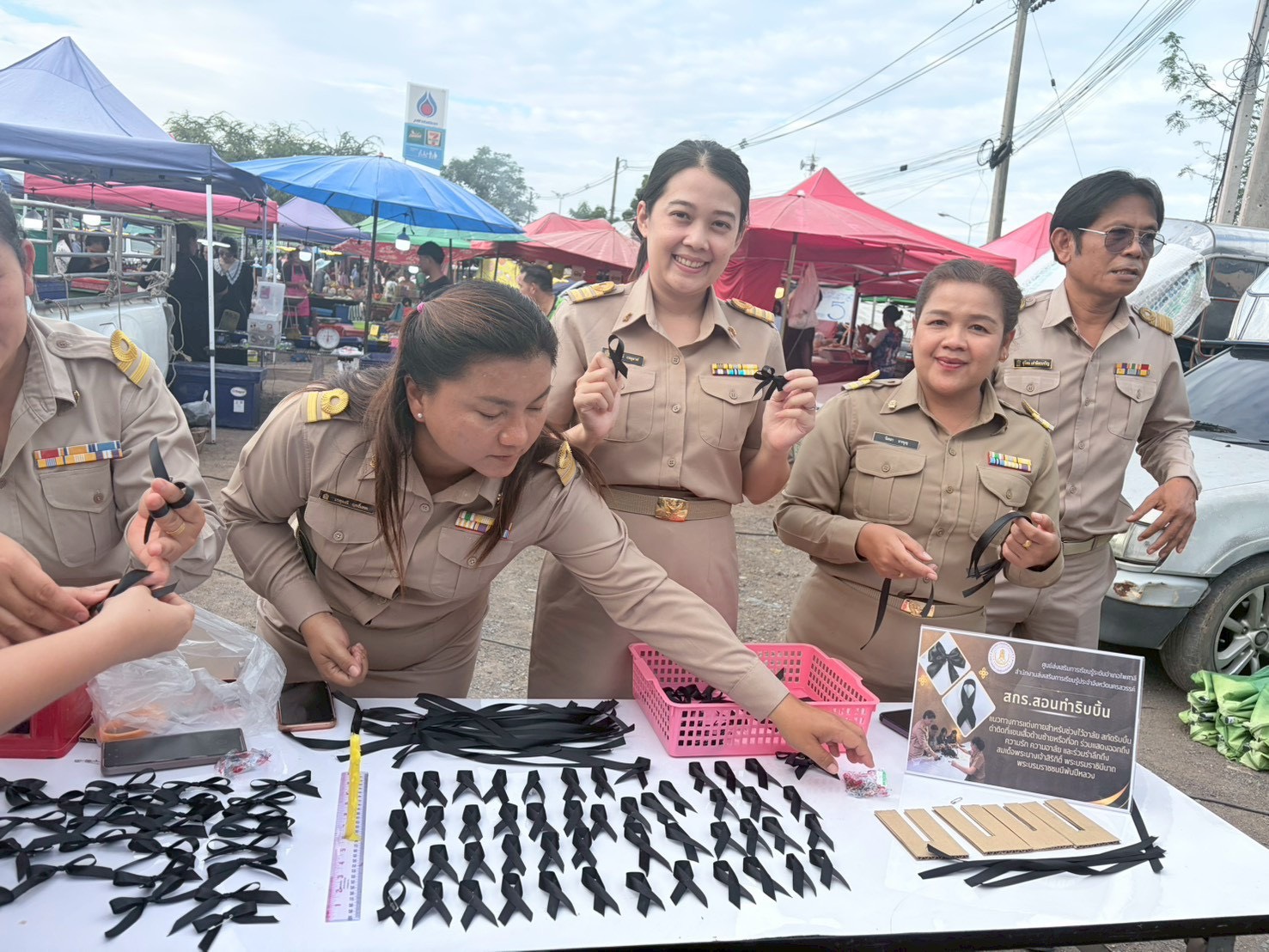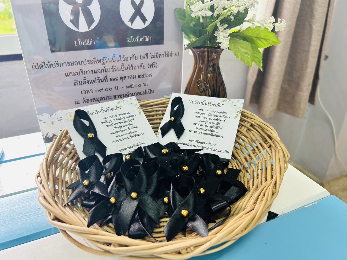 จึงได้จัดกิจกรรมบริการประชาชน “สอนทำริบบิ้นเครื่องหมายแสดงความอาลัย” ขึ้น เพื่อเปิดพื้นที่ให้ประชาชนได้ร่วมกันประดิษฐ์ริบบิ้นฯ สำหรับใช้ติดเครื่องแต่งกาย และได้แจกจ่ายริบบิ้นที่ผู้อำนวยการ ครู และบรรณารักษ์ร่วมใจกันทำขึ้นเพื่อแจกจ่ายให้กับประชาชน เพื่อเป็นการแสดงออกถึงความรัก ความอาลัย และร่วมน้อมเกล้าน้อมกระหม่อมรำลึกในพระมหากรุณาธิคุณอันหาที่สุดมิได้ ซึ่งจัดขึ้นระหว่างวันที่ 27 - 30 ตุลาคม 2568 ณ สกร.ระดับอำเภอ สกร.ระดับตำบล ห้องสมุดประชาชน ห้องสมุดเคลื่อนที่สำหรับชาวตลาด รวมไปถึงการออกจัดกิจกรรมในพื้นที่ที่ประชาชนรวมกลุ่มและออกมาจับจ่ายใช้สอย เพื่ออำนวยความสะดวกแก่ประชาชนให้ได้ร่วมกิจกรรมอย่างทั่วถึง