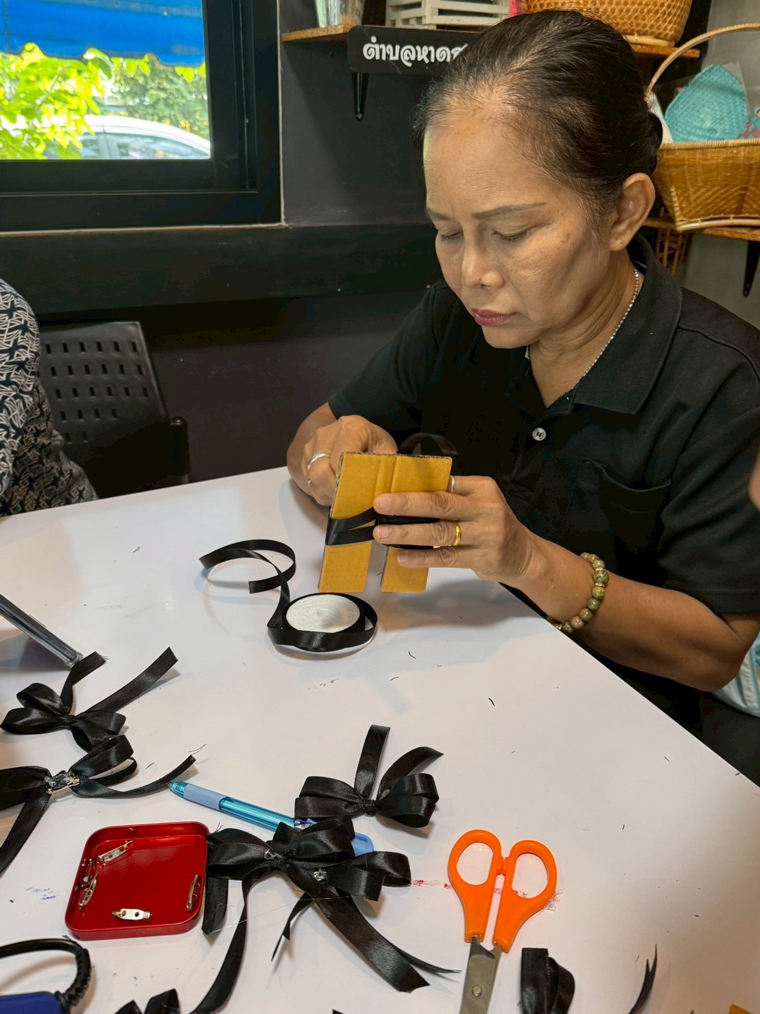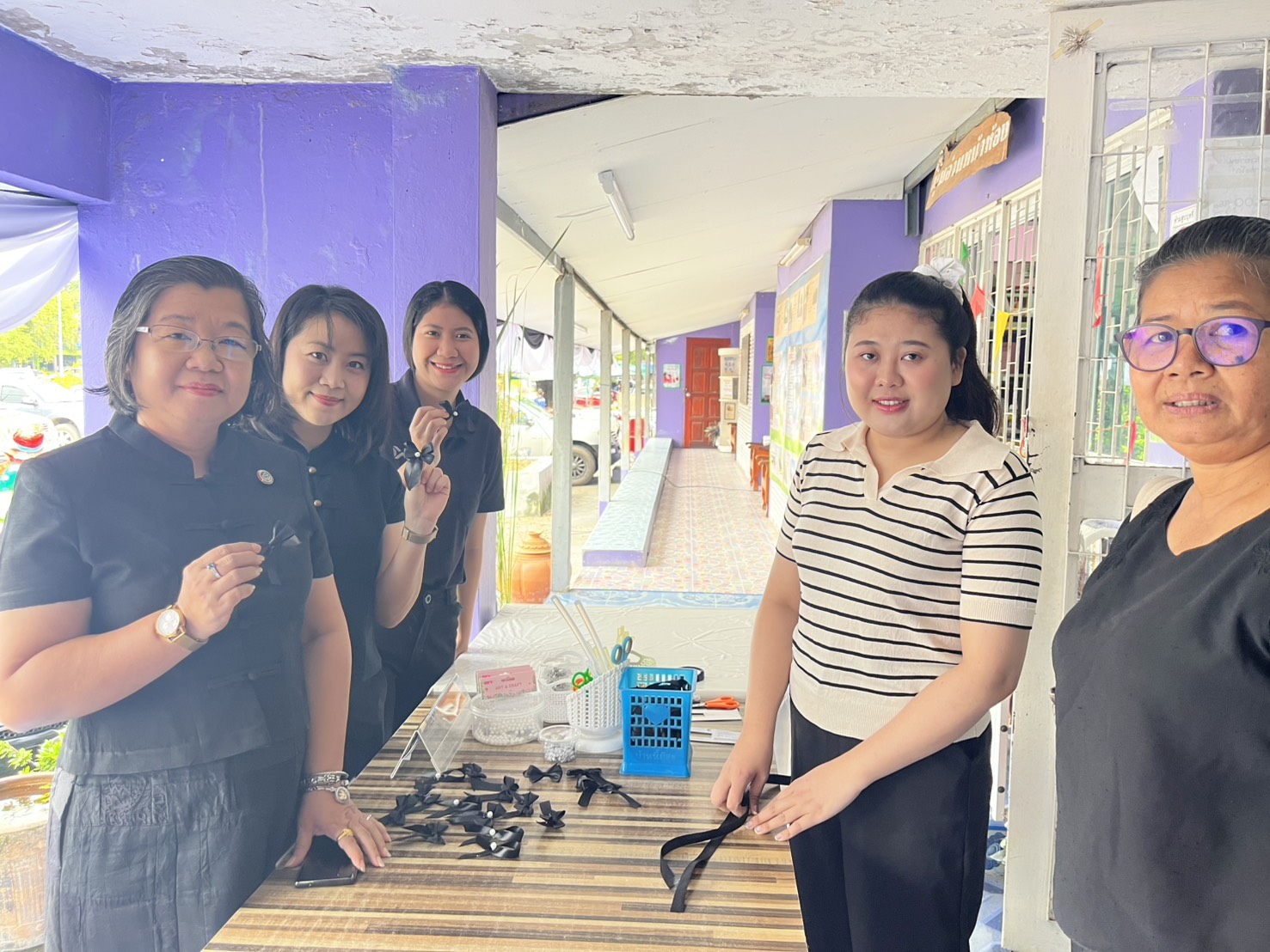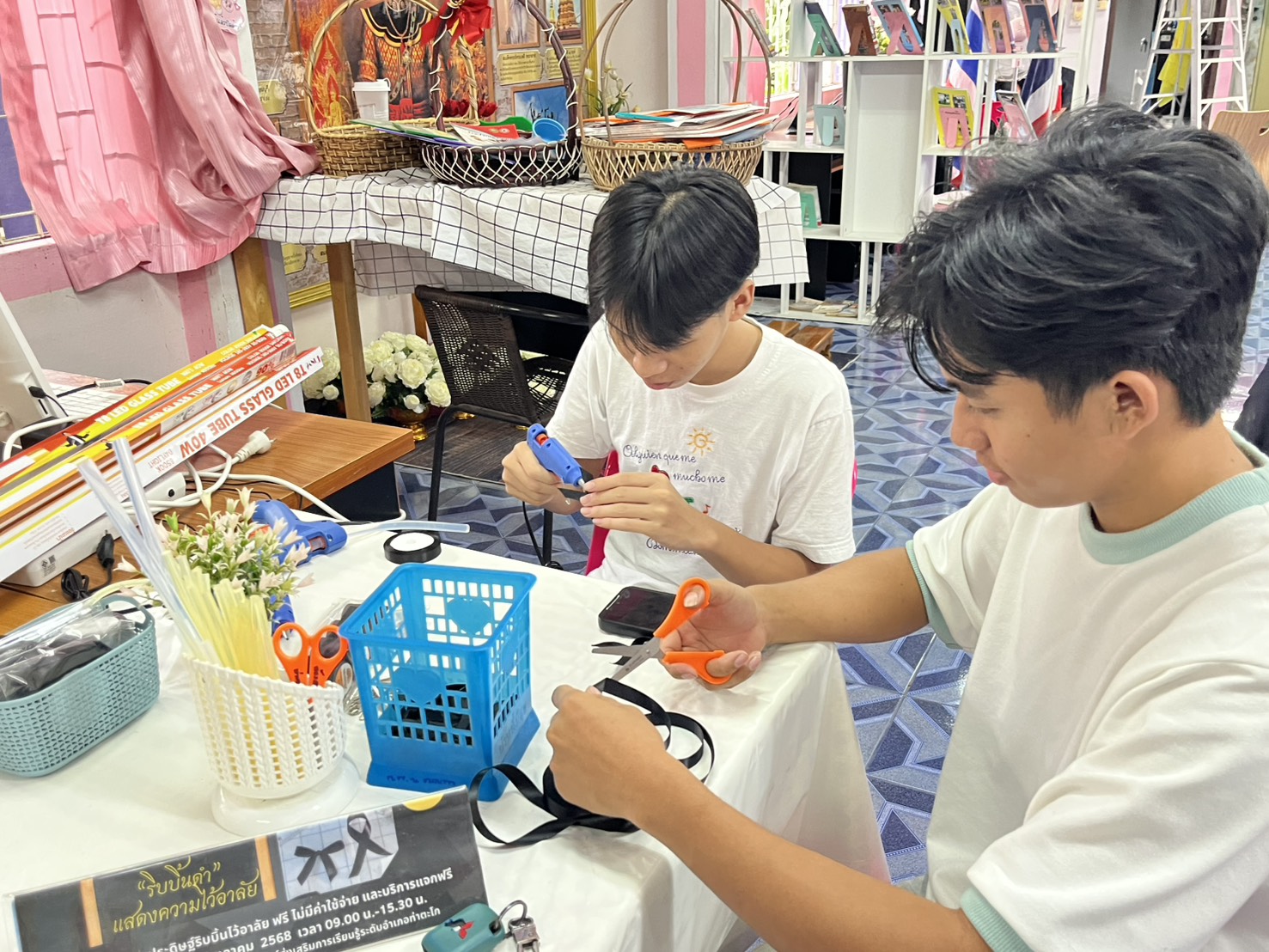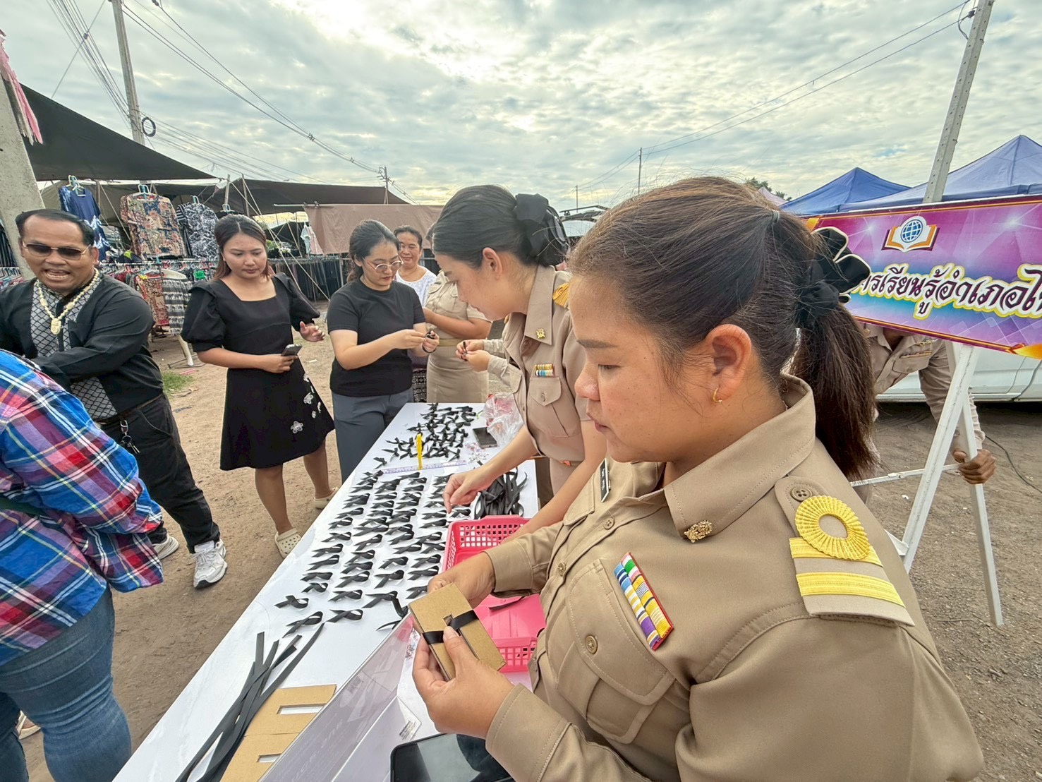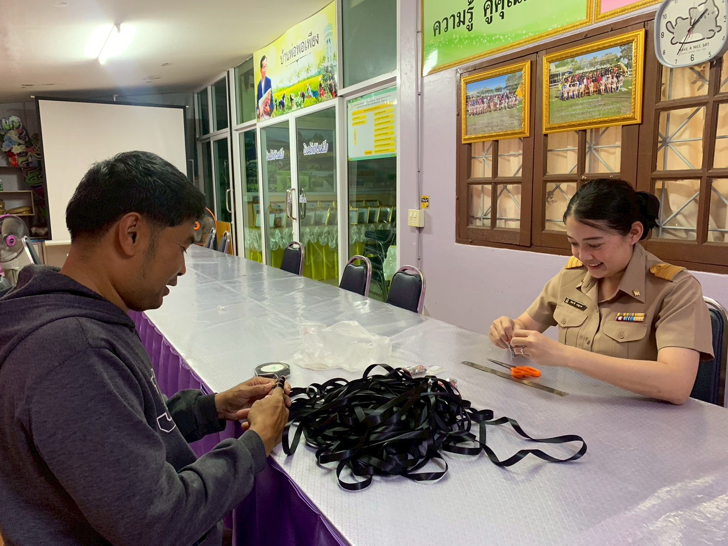 จึงได้จัดกิจกรรมบริการประชาชน “สอนทำริบบิ้นเครื่องหมายแสดงความอาลัย” ขึ้น เพื่อเปิดพื้นที่ให้ประชาชนได้ร่วมกันประดิษฐ์ริบบิ้นฯ สำหรับใช้ติดเครื่องแต่งกาย และได้แจกจ่ายริบบิ้นที่ผู้อำนวยการ ครู และบรรณารักษ์ร่วมใจกันทำขึ้นเพื่อแจกจ่ายให้กับประชาชน เพื่อเป็นการแสดงออกถึงความรัก ความอาลัย และร่วมน้อมเกล้าน้อมกระหม่อมรำลึกในพระมหากรุณาธิคุณอันหาที่สุดมิได้ ซึ่งจัดขึ้นระหว่างวันที่ 27 - 30 ตุลาคม 2568 ณ สกร.ระดับอำเภอ สกร.ระดับตำบล ห้องสมุดประชาชน ห้องสมุดเคลื่อนที่สำหรับชาวตลาด รวมไปถึงการออกจัดกิจกรรมในพื้นที่ที่ประชาชนรวมกลุ่มและออกมาจับจ่ายใช้สอย เพื่ออำนวยความสะดวกแก่ประชาชนให้ได้ร่วมกิจกรรมอย่างทั่วถึง